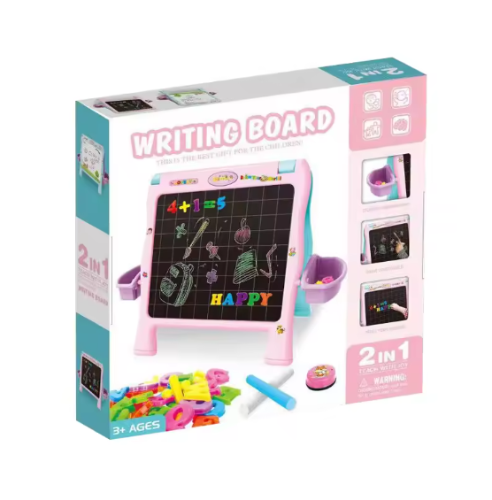 لوحة الكتابة والرسم للأطفال 2 في 1 لعبة تعليمية للحاضرين للصغار. تهدف إلى تقديم متعة تعليمية، ولوحة مزدوجة الجوانب مغناطيسية — جانب للرسم على الحائط، وللتعبير عن الرسوم المتحركة. مع حروف وأرقام ملونة قابلة للسحب، وسطح تنظيف سهل، ومساحة تخزين مدمجة، تُحفّز هذه اللوحة الإبداعية وتعلم المهارات الدقيقة للأطفال من عمر 3 سنوات فما فوق.